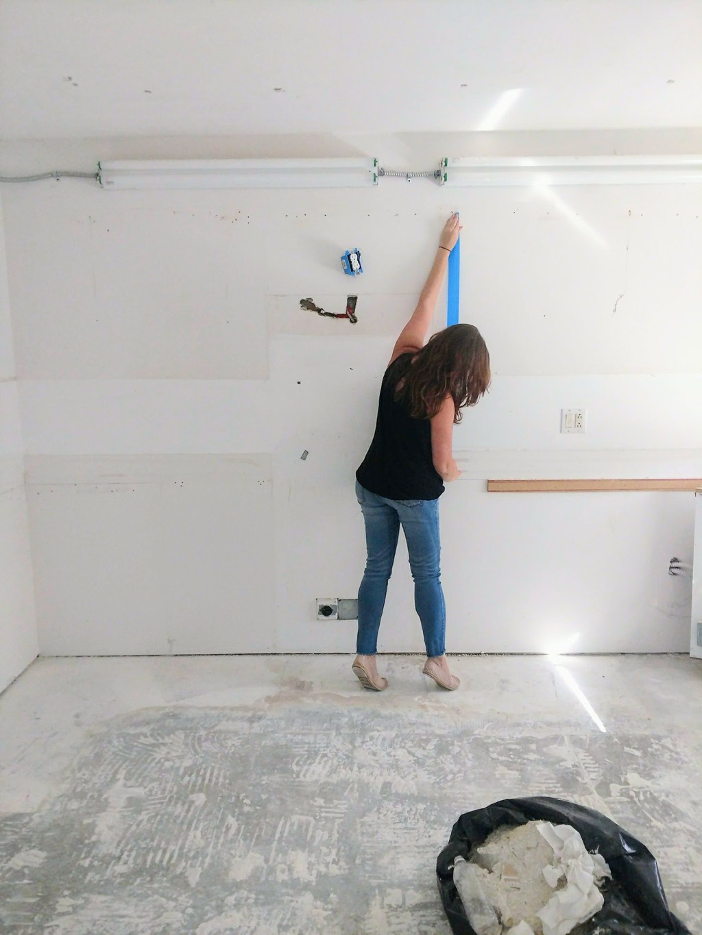 I think the best rule of thumb when you are visiting a job site is: bring your blue tape, second to your tape measure. It is not only helpful for you but incredibly helpful for clients who sometimes have difficulty visualizing the size, width, space, or shape of furniture and cabinets. On this awesome Saturday I am taking my trusty blue tap to this apartment to lay out all the cabinets on the walls so client can help visualize the layout of her uppers, lowers, and range.