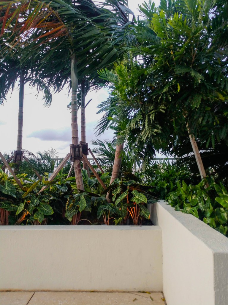 I must admit on our recent visit to the Dalmar, Fort Lauderdale I was very impressed with the planter and landscape integrated into the exterior and interior design of the property. I think one of the things most commercial developers fail at is the attention to greenery. Live planters filled with plush greenery and loaded with color. However, the reason why this particular property caught my attention is the abundance of some of my favorite types of greens like the black magic elephant ears, alocasias, and fiddle figs scattered everywhere inside and out.